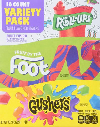 Fruit Roll-Ups, Fruit by the Foot, Gushers, Snacks Variety Pack, 16 ct