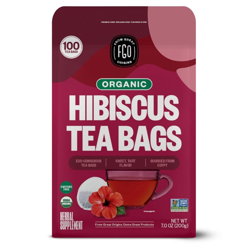 FGO Organic Hibiscus Tea, Eco-Conscious Tea Bags, 100 Count, Packaging May Vary (Pack of 1)