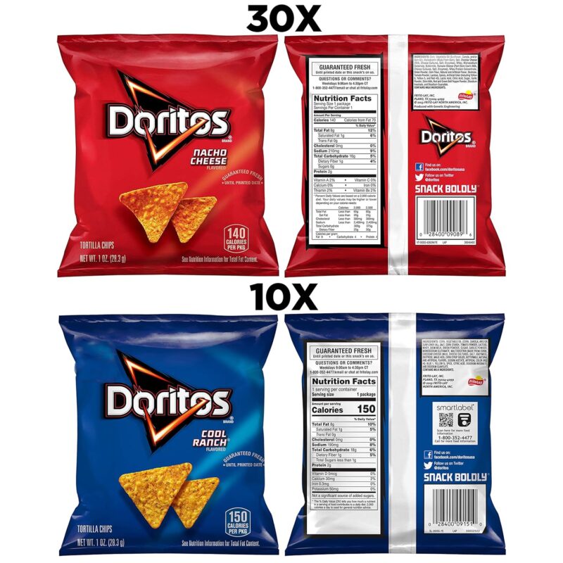 Doritos Flavored Tortilla Chips, Favorites Variety Pack (Nacho Cheese and Cool Ranch), 1 Ounce (Pack of 40)