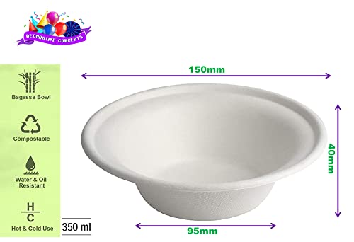 Super Rigid Disposable Paper Bowls Sugercane Biodegradable and Compostable White (340ml 50 Pack)