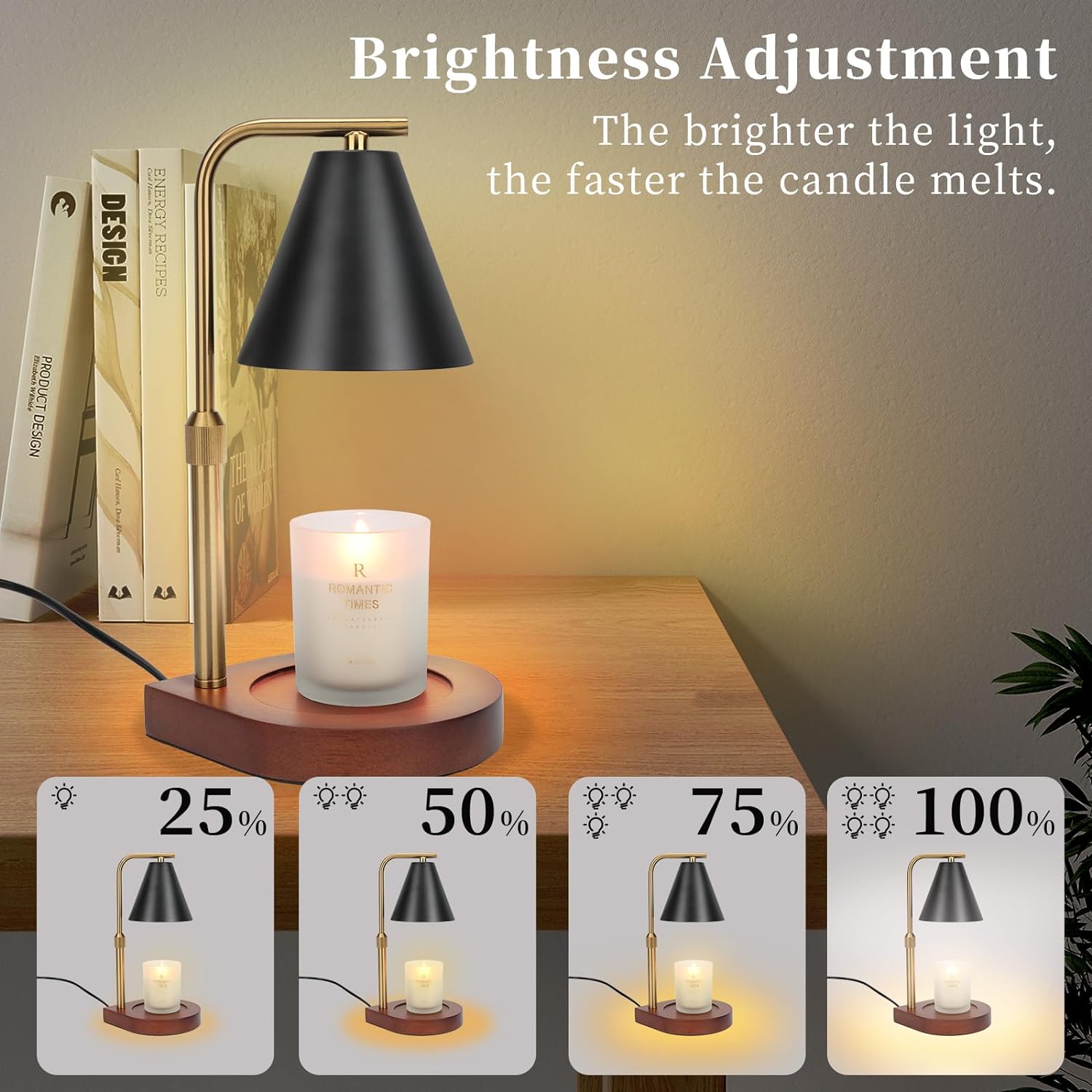 The candle warmer lamp can be adjusted according to the needs of the lamp’s 4 brightness, and has a 2/4/8 hours timer function, the operation is very simple and convenient!