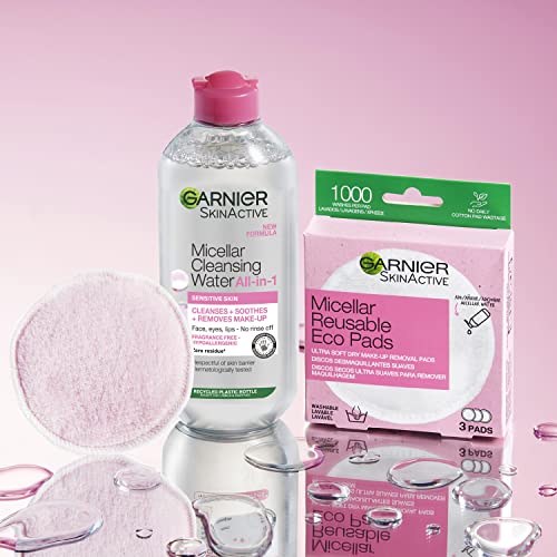Looking for an effective, gentle and hydrating way of removing make-up and cleansing skin in one easy step? Garnier Micellar cleansing waters gently remove up to 100% of make-up, dirt, SPF and pollution from the skin. Skin is left free of impurities, revealing skin so healthy it glows. The gentle cleansing formulas glide over skin and effectively remove make-up without the need to rub or strain delicate sensitive skin. Garnier Micellar Waters are suitable for all sensitive skin types and are the only micellar waters recognised by the British Skin Foundation and Allergy UK. Use with Garnier Micellar Reusable Eco Pads for an effective cleansing system with no daily cotton wool pad waste. Looking for an effective, gentle and hydrating cleanser? Garnier Micellar Cleansing Water gently removes up to 100% make-up and intensely cleanses skin of dirt, oil, SPF, pollution & dead skin cells – all in one step! Skin is left soothed and free of impurities, revealing healthy-looking skin.