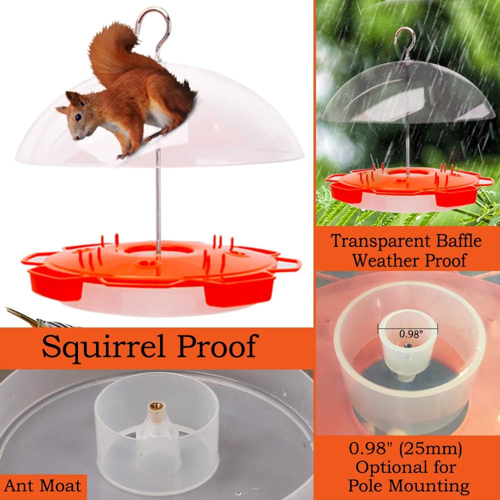 【Both Free hanging and Pole Mounted】–This squirrel proof bird feeders can be used in TWO ways (all accessories included) Whether your bird feeder is on a pole or hung from the side of your house, this baffle will keep squirrels out and provide a proper feeding station for your feathered friends.