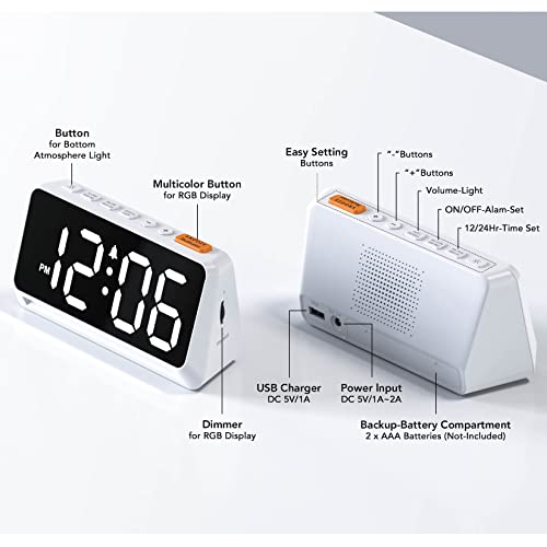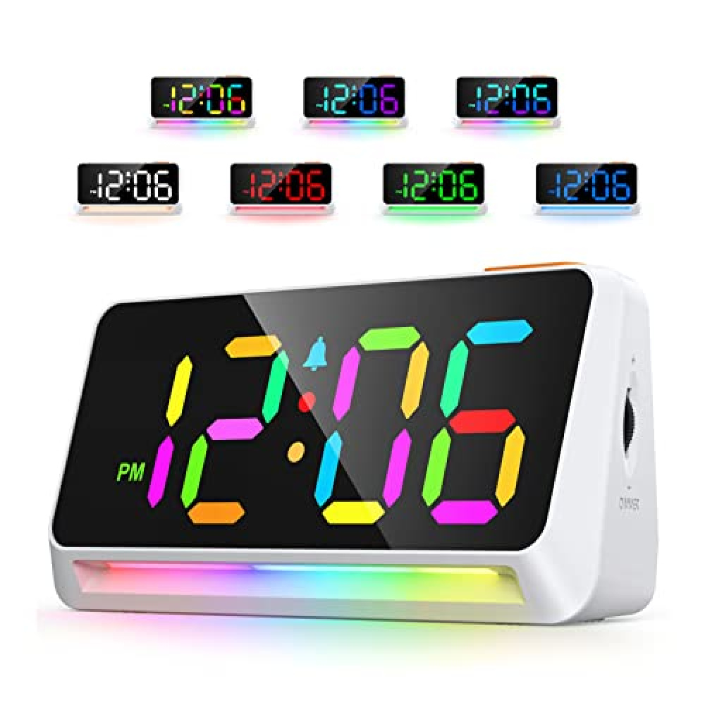 【Colorful Display & RGB Night Light】This is a nice digital alarm clocks bedside with cool,rainbow readout. It is bright and the color changing night light is a great idea for boys and girls. The intensity of the display and night light can be dimmed to your preference.Perfect for the bedside table or bedroom decor. If you’re picky about colors, you’ll like that this alarm clock with light offers regular colors and dynamic RGB color variations, with different finishes and display hues to choose from.